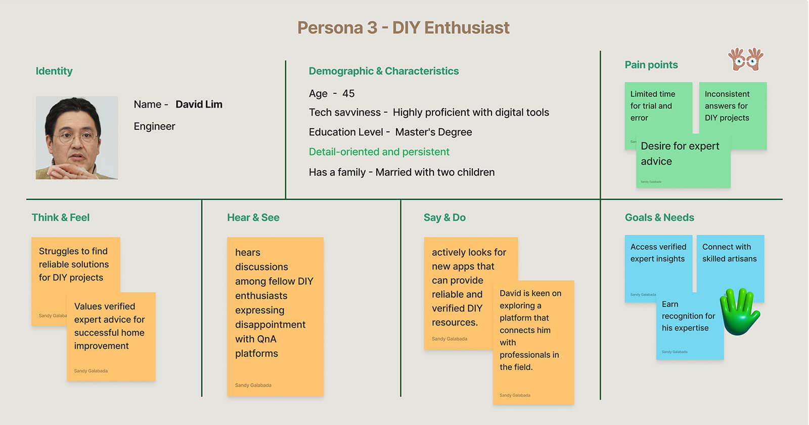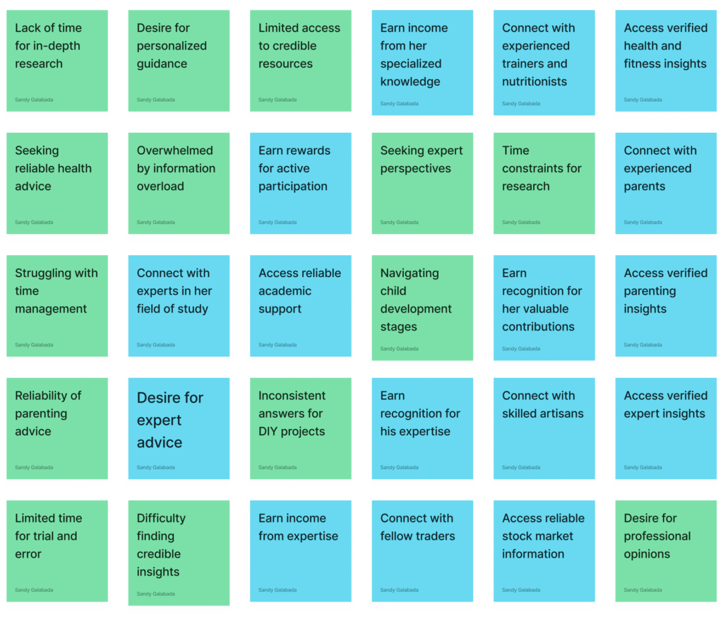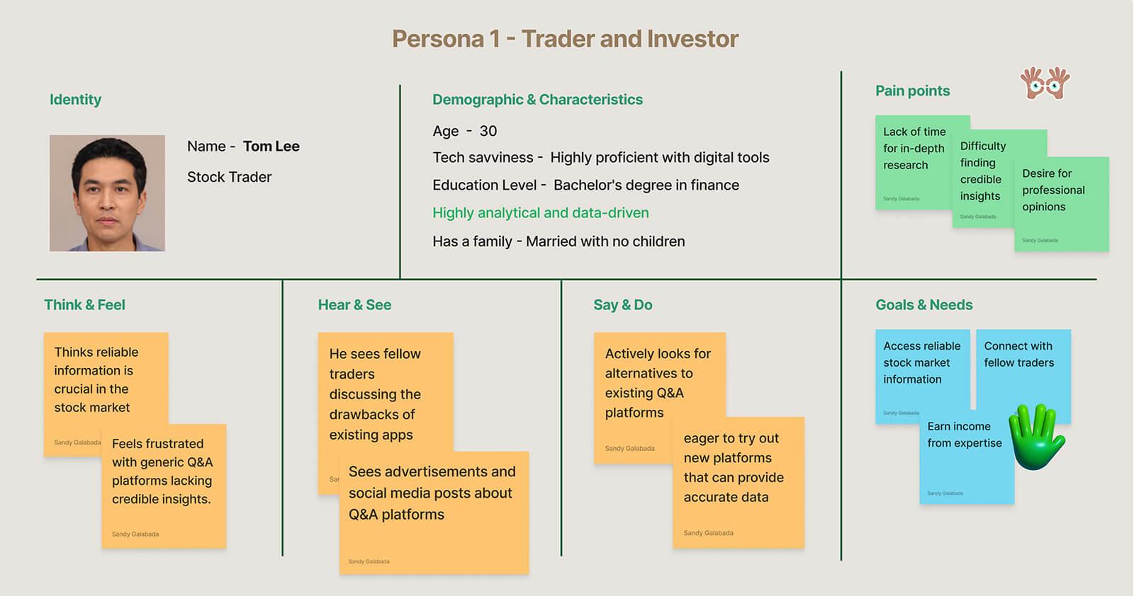 To gain a better understanding of the needs and preferences of potential Qitt users, I conducted in-depth interviews with 12 people ranging in age from 20 to 65 and from various demographics and educational backgrounds. Based on the user research, I developed detailed personas representing various user archetypes: